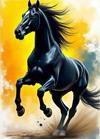 Koşan Siyah Atın Asaleti Modern Ahşap Tablo 25cmX 35cm