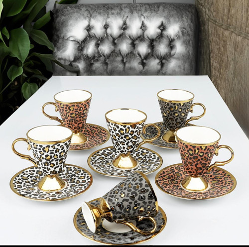 Porselen  6LI Ayaklı Kahve Fincanı 3 Farklı Renk 90 ML