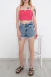 Boy: 23 cm. Bel Genişliği: 29 cm. Bel Yüksekliği: 21 cm. Basen Genişliği: 40 cm. İç Bacak Boyu: 2 cm. Kalıp: Normal Kumaş: Kot denim Özellik: