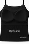 Kadın ip askılı atlette askılara sabit süngerlidir ve iç çamaşırı kullanmasanız bile iç belli etmez.