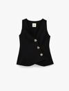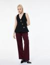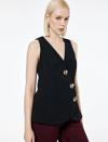 Asimetrik, kruvaze yaka yelek, modern çizgileriyle dikkat çekiyor. Zarif düğme detayları yeleğe sofistike bir hava katıyor. Kolsuz tasarımı sayesinde tişört, bluz veya gömleklerle rahatlıkla kombinlenebiliyor. Normal fit kesimi vücudu nazikçe sararak konfor sağlarken, uzun boyu elegant bir silüet yaratıyor. İş ortamlarının vazgeçilmezi olacak bu yelek, şehir stilinin en sofistike parçaları arasında yer alıyor. Kumaş yapısı sayesinde dört mevsim kullanıma uygun olan yelek, her mevsim şık bir görünüm sunuyor.