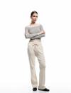 Triko pantolon, yüksek beli ve rahat kesimiyle konforu ön plana çıkarıyor. Yan cepleri ve beli ayarlamanızı sağlayan bağcıkları ile pratik bir kullanım sunuyor. Viskon karışımlı örme yapısı sayesinde gün boyu şıklığınızı tamamlıyor ve aynı zamanda sıcak tutuyor. Normal paça detayları trend bir görünüm kazandırırken, gardırobunuza zamansız bir parça ekliyor.