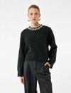 Bisiklet yaka triko kazak, zarif detayları ve konforuyla dikkat çekiyor. Uzun kollu tasarımı soğuk havalarda sıcaklık sağlarken, taş detayları ile stilinize şıklık katıyor. Regular fit kesim vücuda hoş bir şekilde oturuyor, günlük ve ofis kombinlerinde ideal bir parça olarak öne çıkıyor. Kazak, kaliteli kumaşıyla hem dayanıklı hem de rahat bir kullanım sunuyor. Standart boyu ile pantolon ve eteklerle mükemmel uyum sağlıyor.