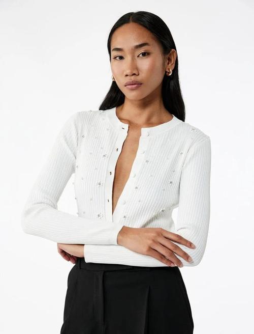 Triko hırkayı, jean pantolonlar ve topuklu botlarla kombinleyerek şık bir ofis stili yaratabilirsiniz. Akşam davetlerinde ise midi etek ve ince topuklu ayakkabılarla zarafeti yakalayabilirsiniz. Sezonun trend çantalarıyla tamamladığınızda stilinizi bir üst seviyeye taşıyabilirsiniz. Takı seçimlerinizi minimal tutarak hırkanın taş detaylarını ön plana çıkarabilirsiniz.