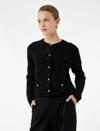 Düğmeli uzun kollu metalik iplik detaylı triko hırka, zarif ve modern çizgileriyle dikkat çekiyor. Bisiklet yaka tasarımı ve şık düğme detayları, hırkaya sofistike bir hava katıyor. Metalik iplik dokusu parıltılı bir görünüm sunarken kaliteli kumaşı hafif ve konforlu bir kullanım sağlıyor. Standart uzunluğu ile hem günlük kombinlerde hem de ofis stilinde rahatlıkla kullanılabiliyor.