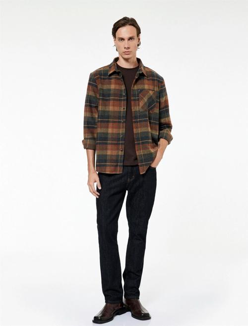 Koton K26 6Wam60097Hw 2C1 Turuncu Ekose Erkek Akrılık Dokuma Uzun Kollu Gomlek