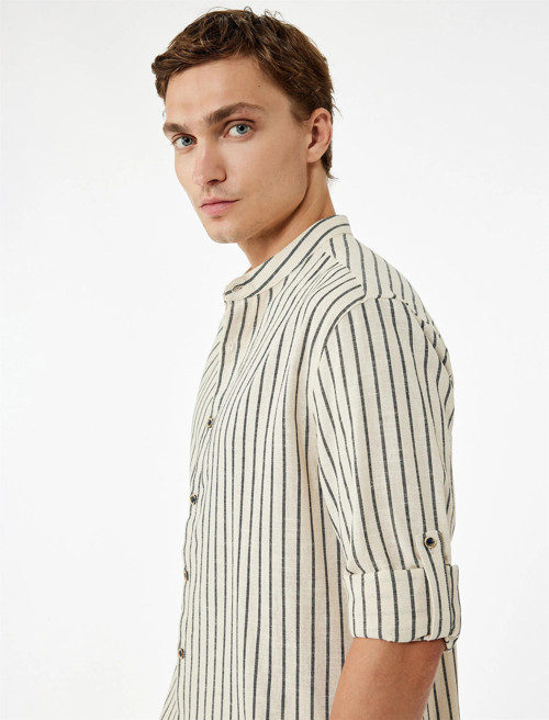 Koton K26 6Wam60102Hw 7S0 Lacıvert Cızgılı Erkek Pamuk Dokuma Uzun Kollu Gomlek