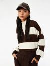 Çizgili triko kazak, gün boyu rahat etmenizi sağlarken farklı kombin seçenekleri sunuyor. Jean pantolonlar ve sneaker ayakkabılarla günlük bir stil yaratabilir, iş şıklığını yakalamak için kumaş pantolonlar ve klasik ayakkabılarla tamamlayabilirsiniz. Serin akşamlar için üzerinize alacağınız bir ceket ile kombini zenginleştirin. Dilerseniz, kazak ile uyumlu renklerde bir şapka ve çanta ekleyerek tarzınıza kişisel bir dokunuş katın.