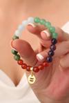 Kova burcu doğaltaş bilekliği Ametist, Kanada Yeşim, Akuamarin, Akik, Aventurin ve Hematit taşlarından oluşmaktadır.