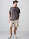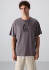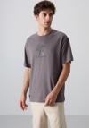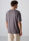 Koyu Gri Pamuklu Kalın Yumuşak Dokulu Oversize Fit Baskılı Erkek T-Shirt - 88332
