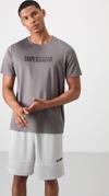 Tommy Life Koyu Gri Polyester Nefes Alan Dokulu İnce Esnek Standart Fit Erkek Performans T-Shirt - 88385
