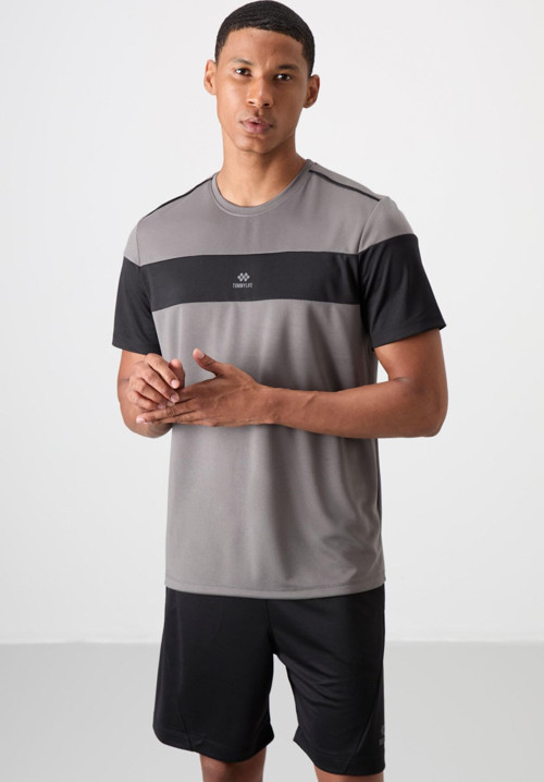 Tommy Life Koyu Gri Polyester Nefes Alan Dokulu İnce Esnek Standart Fit Erkek Performans T-Shirt - 88396