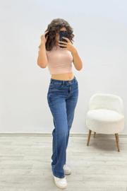 Mihrim Butik koleksiyonundan şık ve rahat bir seçenek olan Koyu Mavi Düz Paça Mavi Jean Pantolon, gardırobunuzun vazgeçilmezi olmaya aday.