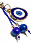 Koyu Mavi Nazar Boncuklu Sarı Metal Anahtarlık – Şıklık ve Koruyucu Sembol Bir Arada