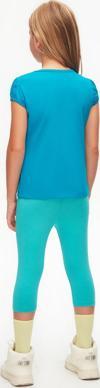 Koyu Turkuaz Basic Kız Çocuk Sıfır Yaka Karpuz Kol Tişört