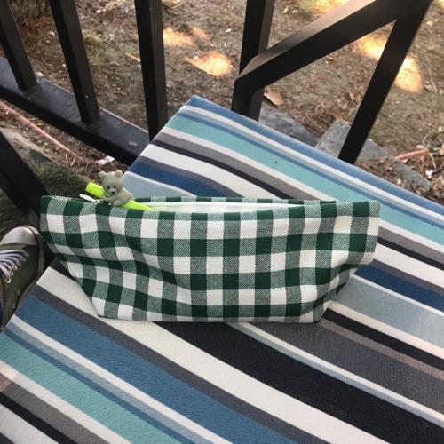 Sumicorn Design Koyu Yeşil Pötikareli Yıkanabilir Fermuarlı Tek Göz Bez Kalemlik Kalem Kutusu Cüzdan Makyaj Çantası