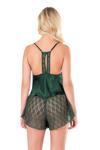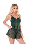 Koyu Yeşil Saten Babydoll Şort Takımı 9110
