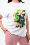 Kadın Büyük Beden Çiçek Baskı Detaylı Eşofman Takımı, 42-50 bedene uyumludur.