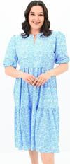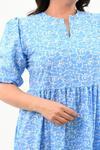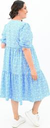 Koza Butik Kadın Büyük Beden Çiçek Desenli Elbise 5230-25 Bebe Mavi 2XL
