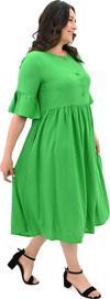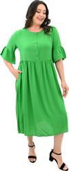 Bu elbise, özellikle büyük beden kadınlar için tasarlanmış olup düğme detayları ile zarif bir görünüm kazandırılmıştır.