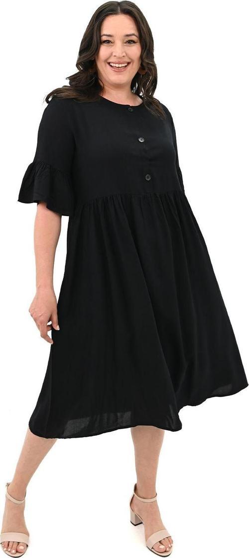 Kadın Büyük Beden Düğme Detaylı Elbise, 42-50 bedene uyumludur.