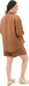 Kadın Büyük Beden Şortlu Keten Takım 8121-25 Kahverengi 6XL