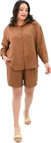 Koza Butik Kadın Büyük Beden Şortlu Keten Takım 8121-25 Kahverengi 6XL