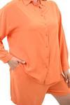Koza Butik Kadın Büyük Beden Uzun Kollu Şortlu İkili Takım 8127-25 Turuncu 4XL