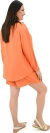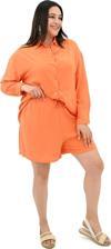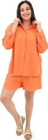 Koza Butik Kadın Büyük Beden Şortlu Keten Takım 8121-25 Turuncu 2XL