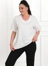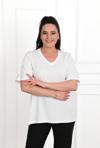 Kadın V Yaka Basic Büyük Beden T-Shirt 1297-22 Ekru 2XL