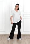 Kadın Bisiklet Yaka Yırtmaç Detaylı Büyük Beden Tshirt 9633-22 - Image 1