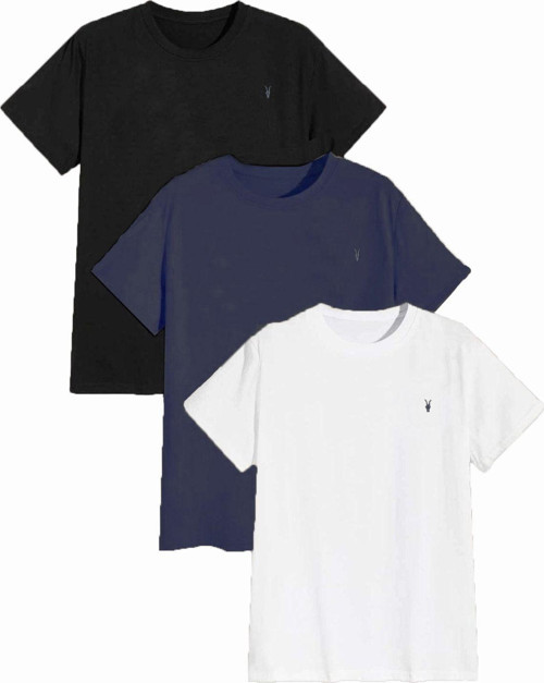 Kozik Erkek Siyah-Lacivert-Beyaz Bisiklet Yaka Standart Pamuk Basic T-Shirt