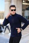 Kozik Erkek Siyah Polar Kışlık Kalın Tam Fermuar Pamuklu Kumaş Polar Ceket Lacivert S