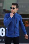 Kozik Erkek Siyah Polar Kışlık Kalın Tam Fermuar Pamuklu Kumaş Polar Ceket Sax XL