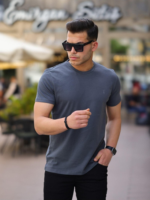 Kozik Erkek Tişört Füme Tişört Standart Bisiklet Yaka Düz %100 Pamuk Erkek T-shirt Mankenin Üzerindeki M Bedendir .