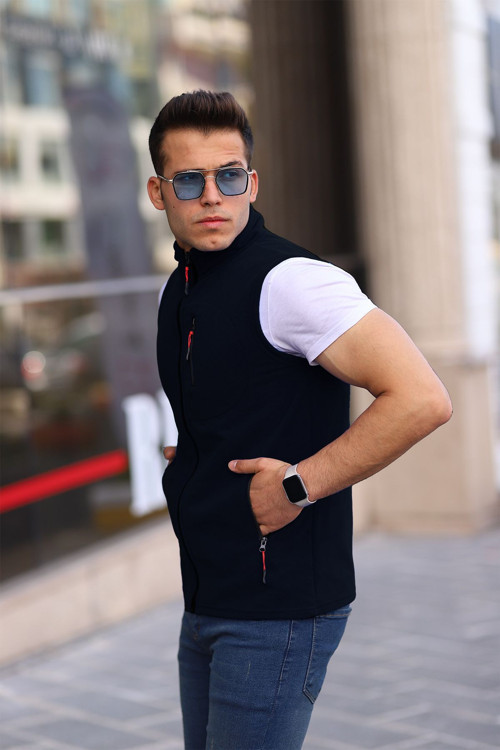 Kozik Yelek Kolsuz 3 Çepli Erkek Polar Günlük Standart Rahat Fermuarlı Polar Yelek Erkek Lacivert 2XL