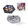 Kozmetik Organizeri açtığınızda, yuvarlak bir görünümü vardır, organizerin kenarındaki ipi çektiğinizde kese şeklini alır.