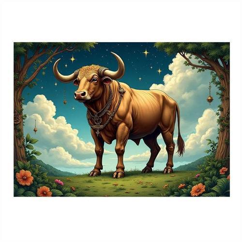 Kozmik Boğa Burcu Figürü Hediyelik Mdf Tablo 50cmX 70cm