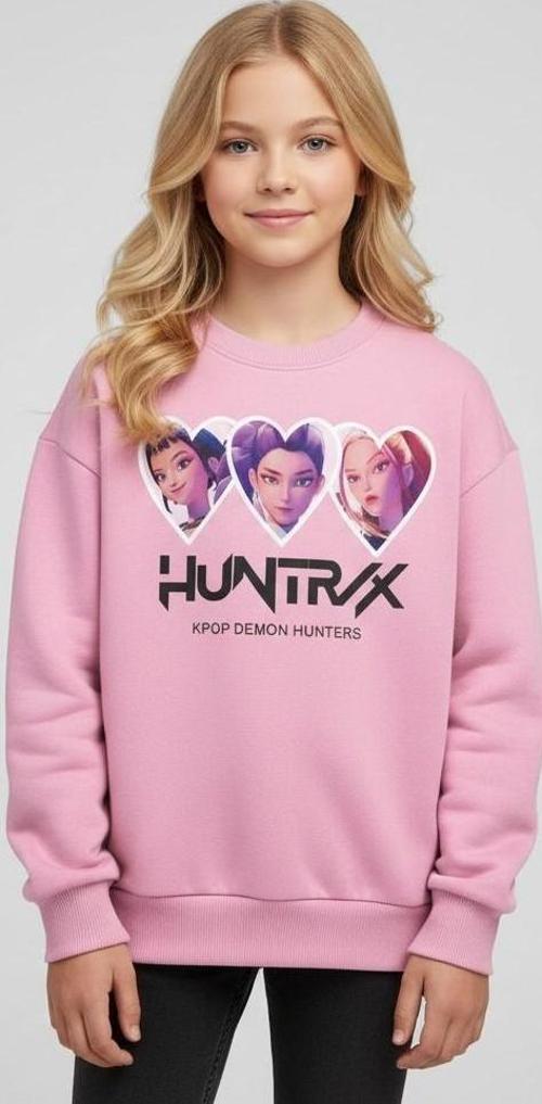 - K-Pop’un enerjik dünyasını seven kız çocukları için tasarlanan HUNTRX K-Pop Demon Hunters Sweatshirt, yumuşacık dokusu ve dikkat çekici tasarımıyla günlük kombinlerin vazgeçilmezi oluyor.