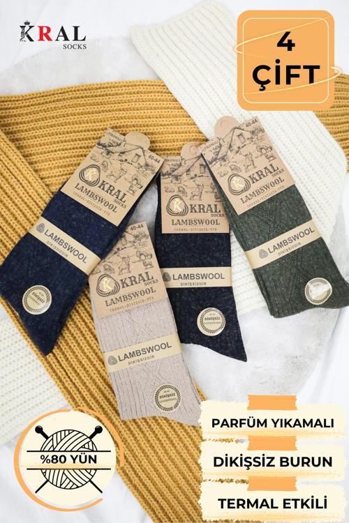 Kral Socks 4'Lü Thermal Etkili Ince Örgülü Kışlık Çorap Lambswool Yünlü (Kuzu Yünlü) (40-44 Numara).