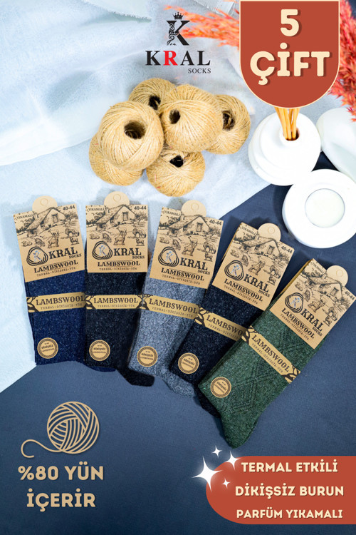 Erkek Kışlık Termal Etkili (5'li Paket) Lambswool Kuzu Yünlü Çorap Ürün İçeriği : %80 Lambswool , %17 Polyamide , %3 Elastane dır.