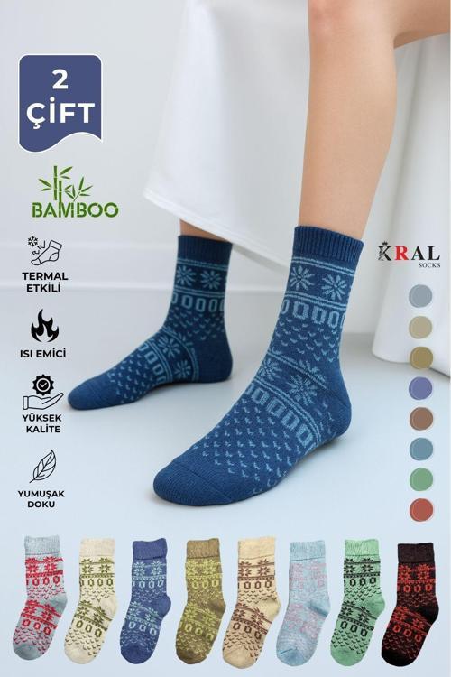 Kadın Havlu 2 Çift Kışlık Yün Çorap (BAMBU + YÜN) Sonbahar Serisi - %80 pamuk içeriğiyle yumuşak dokunuşu ve nefes alabilir yapısıyla gün boyu konfor sunar.