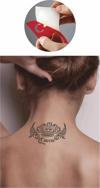 1 dakikada gerçek dövmeden ayırt edilemeyen ve ortalama 1 haftaya kadar banyo ve deniz suyundan etkilenmeyen dövmeniz hazır. İsterseniz dövmeyi kolonya ile silebilir ve istediğiniz zaman gene yapabilirsiniz.