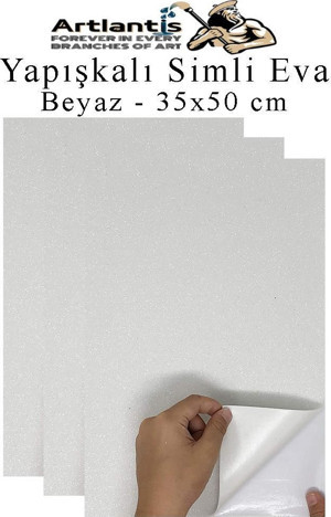 Artlantis Beyaz Yapışkanlı Simli Eva 35x50 cm 3 Adet Simli Yapışkanlı Eva Süngeri Okul Kreş Anasınıfı Elişi Etkinlikleri Hobi