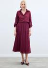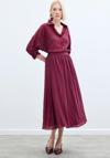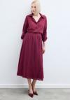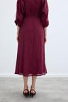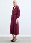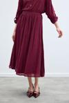 Yüksek bel, yan fermuarlı, iç astarlı, midi boy, kraşlı kloş etek.