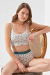 Cottonhill Krem Çiçek Desenli Ayarlanabilir Askılı Lazer Kesim Kadın Crop Büstiyer