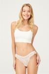 Cottonhill Krem Çiçek Desenli Tül Kenarları Fırfırlı Tanga Külot