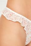 Krem Çiçek Desenli Tül Kenarları Fırfırlı Tanga Külot