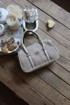 Krem Hasır Doku Çift Şeritli El Omuz Çantası