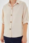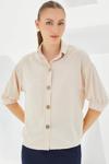 Krem Kısa Kol Oversize Keten Gömlek 20240